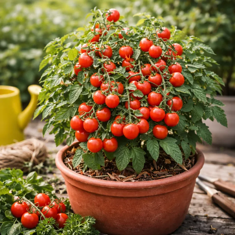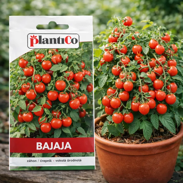 Paradajka BAJAJA je obľúbená kompaktná cherry paradajka určená najmä na pestovanie v črepníkoch, balkónových nádobách a menších záhradách. Rastlina vytvára hustý, nízky krík a bohato rodí drobné, sladké červené plody.