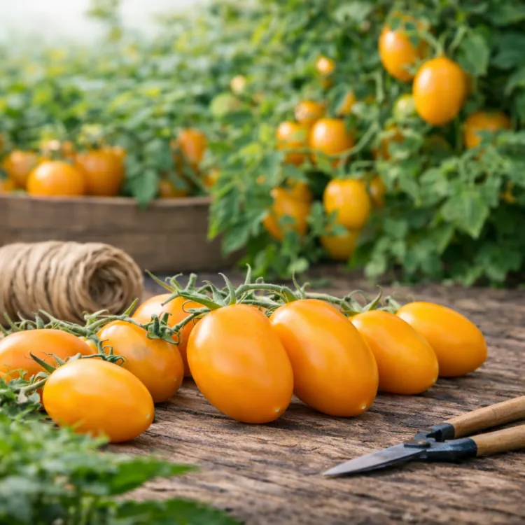 Pre tyčkové paradajky odporúčame pravidelné vyväzovanie a priebežné odstraňovanie bočných výhonkov (zálistkov) – rastlina sa sústredí na plody a úroda býva kvalitnejšia.